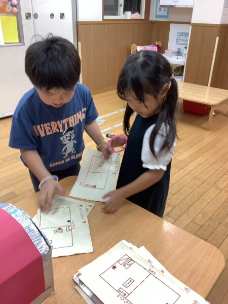 保育園中を回ってクイズを解きながらたくさんのお宝をGETし、ゴールとなる屋上までペアのお友だちと力を合わせて頑張りました!