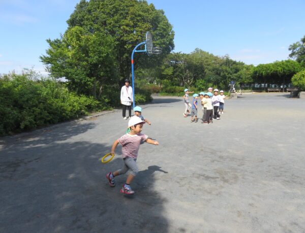 すみれ組(4.5歳児)は、来月の運動会に向けてリレーの練習です!