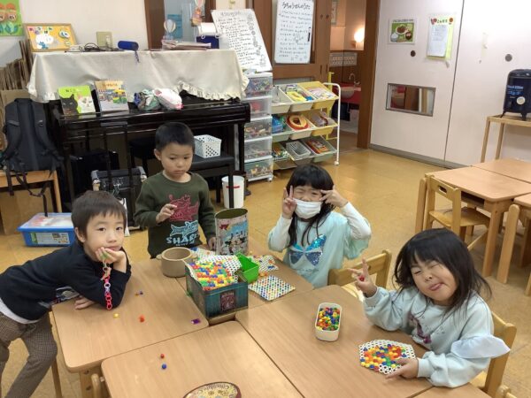 各コーナーの先生に渡して遊んでいるにじいろ保育。