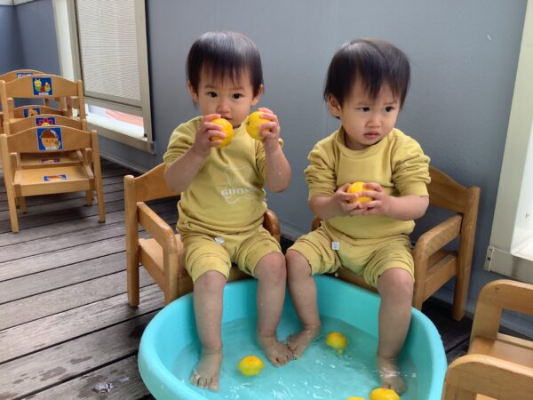 0.1歳児さんは小さなたらいで♪