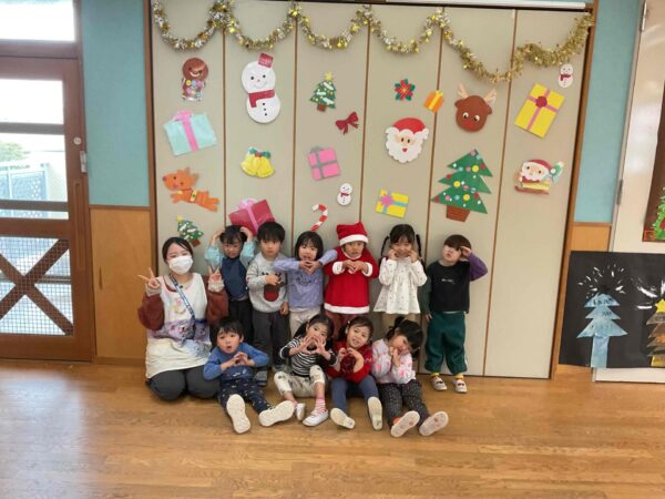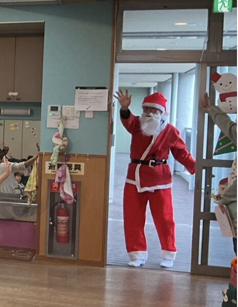 くっくにプレゼントを持ったサンタさんが来てくれました!突然の登場に子どもたちは大喜び!