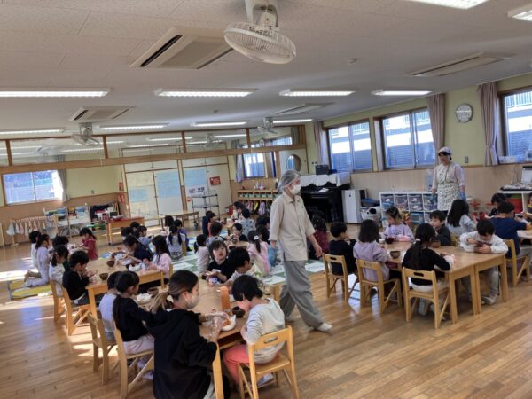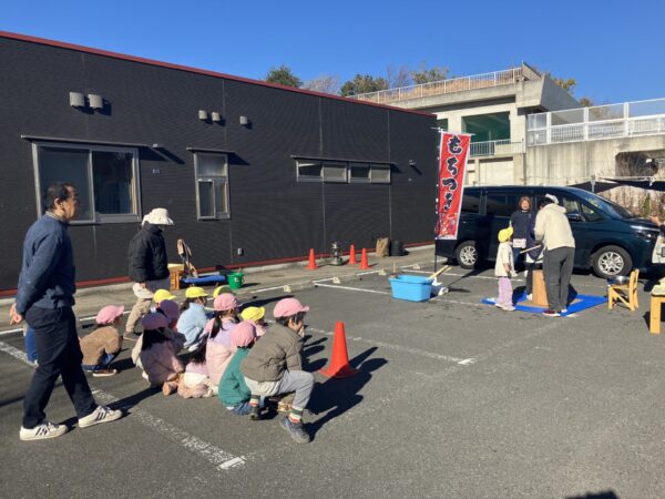 今年は姉妹園の園児を招待して、もちつき後おもちのピザをみんなで作ったり、お正月遊びをしたりしました✨