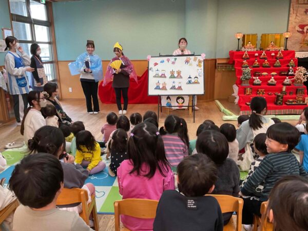 ひな祭りクイズやパネルシアター、『うれしいひなまつり』を歌ったり盛りだくさんでした。